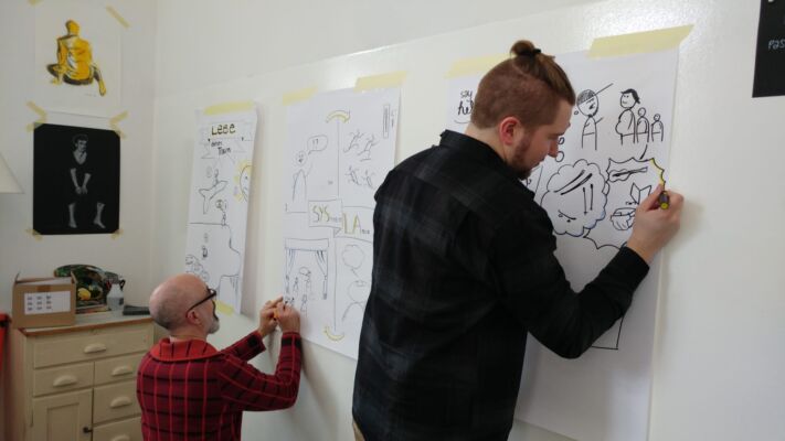 Von einfachen Grundformen hangeln wir uns zu konkreteren Elementen wie Symbole, Gesichter, Rahmen und ganzen Menschen. Gemeinsam arbeiten wir uns durch die Übungen, so dass du am Schluss deinen Fundus an Visualisierungen im Zugriff hast.